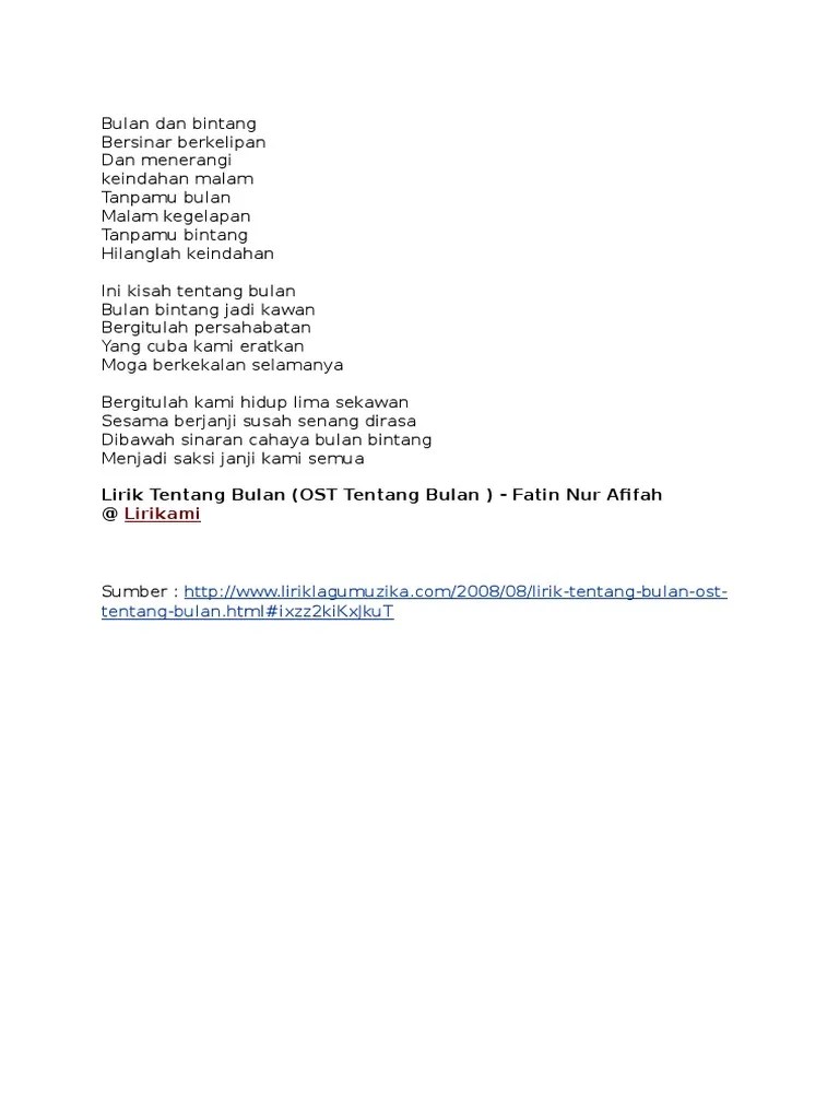 Lirik Lagu Ini Kisah Tentang Bulan Bulan Bintang Jadi Kawan / Ost Tentang Bulan Lirik Fatin Nur Afifah Youtube